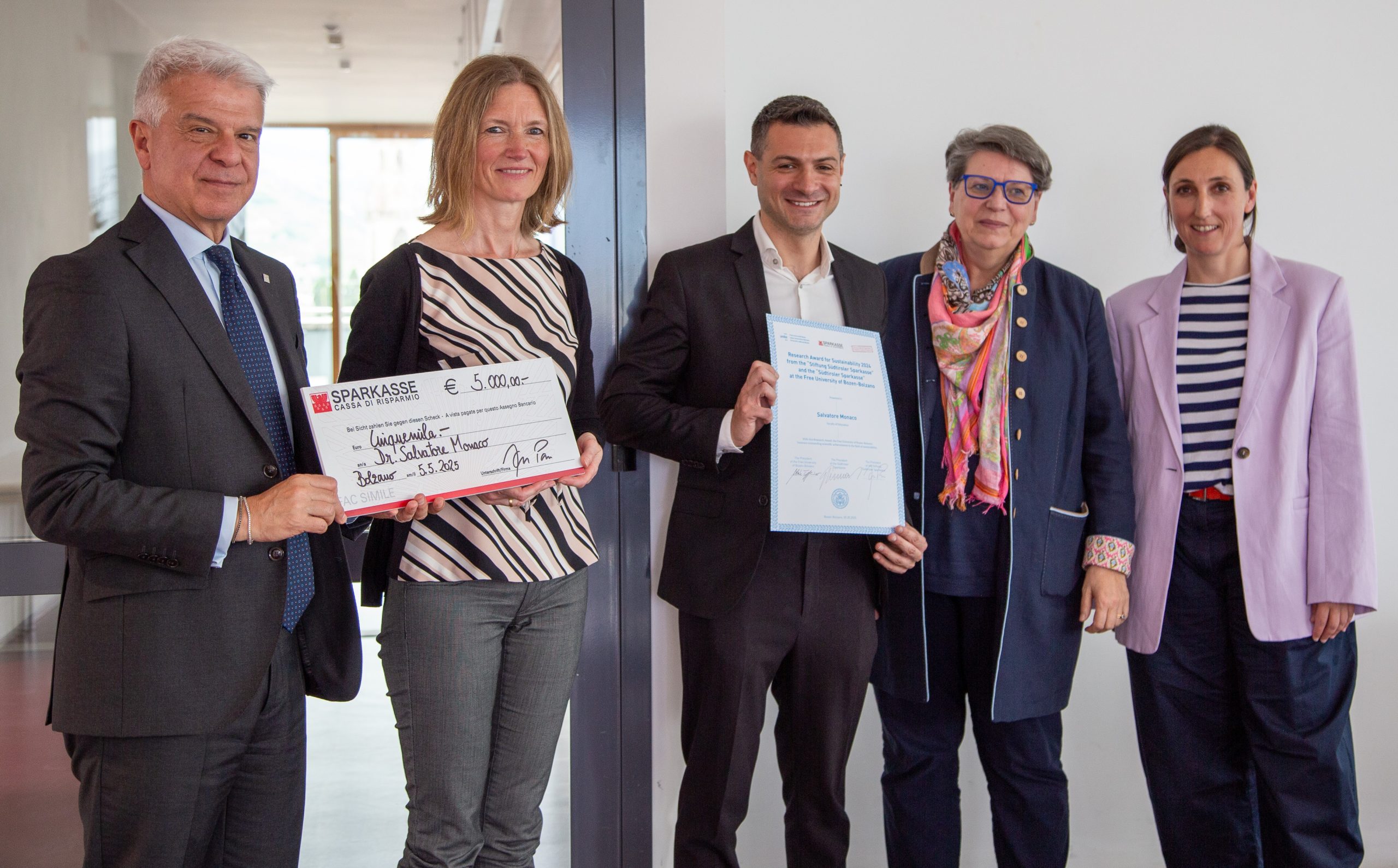 Il riconoscimento, finanziato da Sparkasse insieme alla Fondazione Cassa di Risparmio di Bolzano, è stato consegnato dal CEO della banca, Nicola Calabrò, presente alla cerimonia insieme a Daniela Vitali, Responsabile ESG & Sustainability del Gruppo Sparkasse. Ha partecipato alla cerimonia di consegna, in rappresentanza della Fondazione, anche Heidi Röhler, membro dell'Organo di Indirizzo.