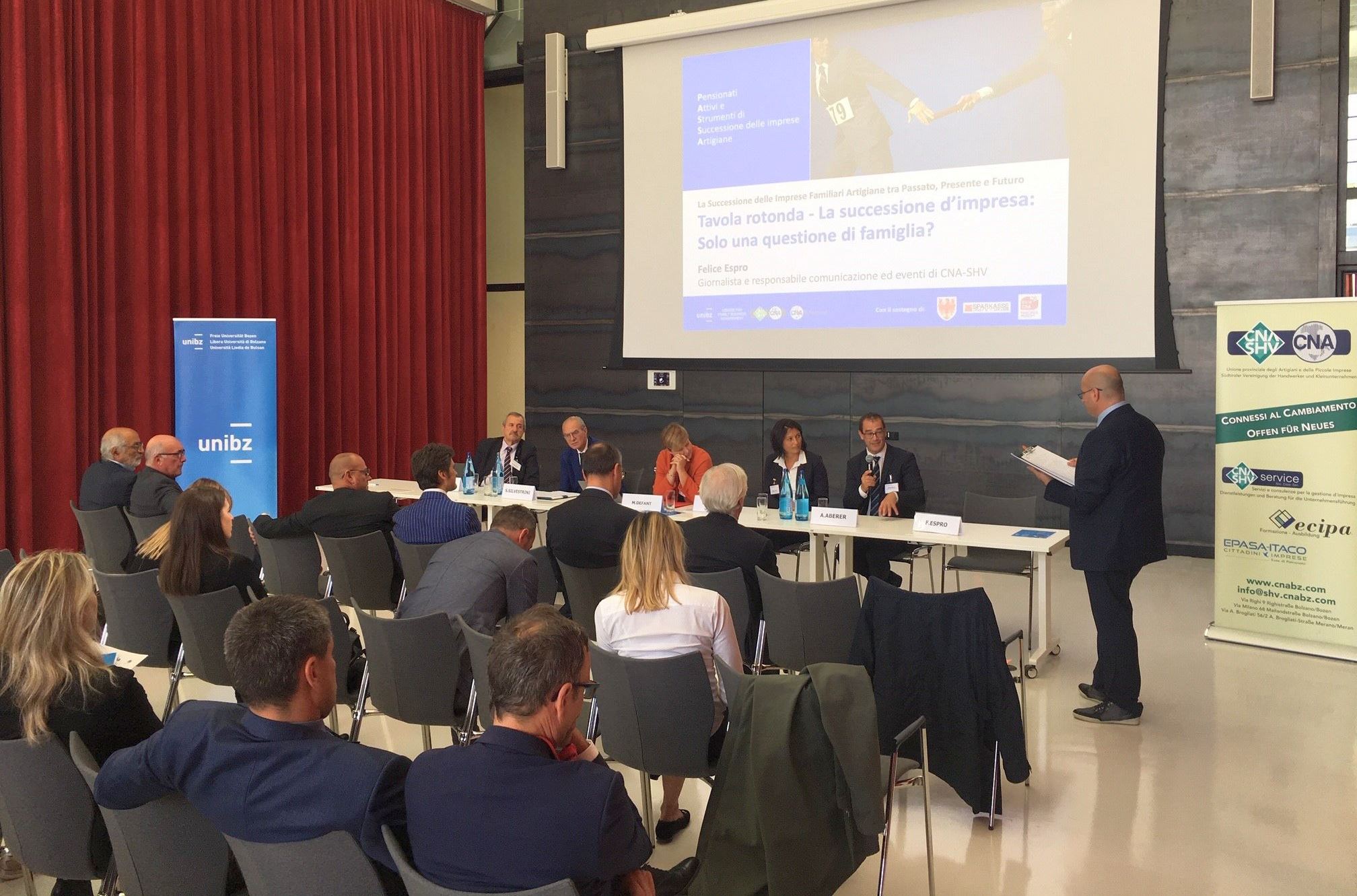 Come aiutare le imprese artigiane a superare la prova del passaggio del testimone dal titolare agli eredi? Il tema è stato al centro di un convegno organizzato da CNA-SHV (Unione Provinciale degli Artigiani e delle Piccole Imprese) e Unibz (Libera Università di Bolzano) in collaborazione con Sparkasse.