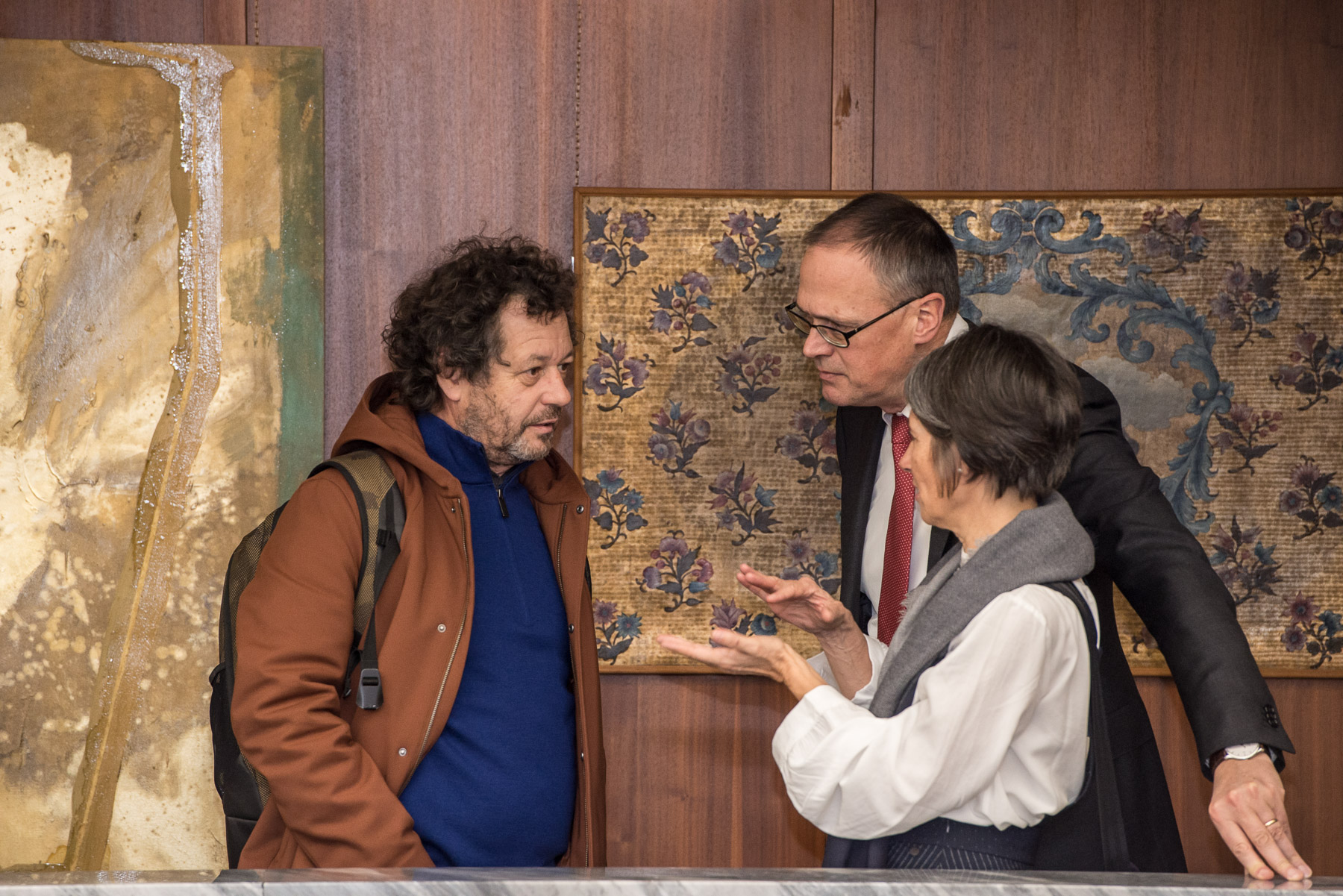 Al vernissage della mostra hanno partecipato, oltre al Vice-Presidente della banca, Carlo Costa, tra l’altro anche l’ex-Presidente della Fondazione Cassa di Risparmio Karl Franz Pichler e l’ex-Vice-Presidente della Fondazione Simona Kettmeir-Altichieri, il Commissario del Governo, Prefetto Vito Cusumano, la Vice-Prefetto Francesca De Carlini, la Comandante Polizia Stradale sezione di Bolzano, Anna Lisa Mongiorgi, e il Comandante della Compagnia dei Carabinieri di Bolzano Gennaro De Gabriele.